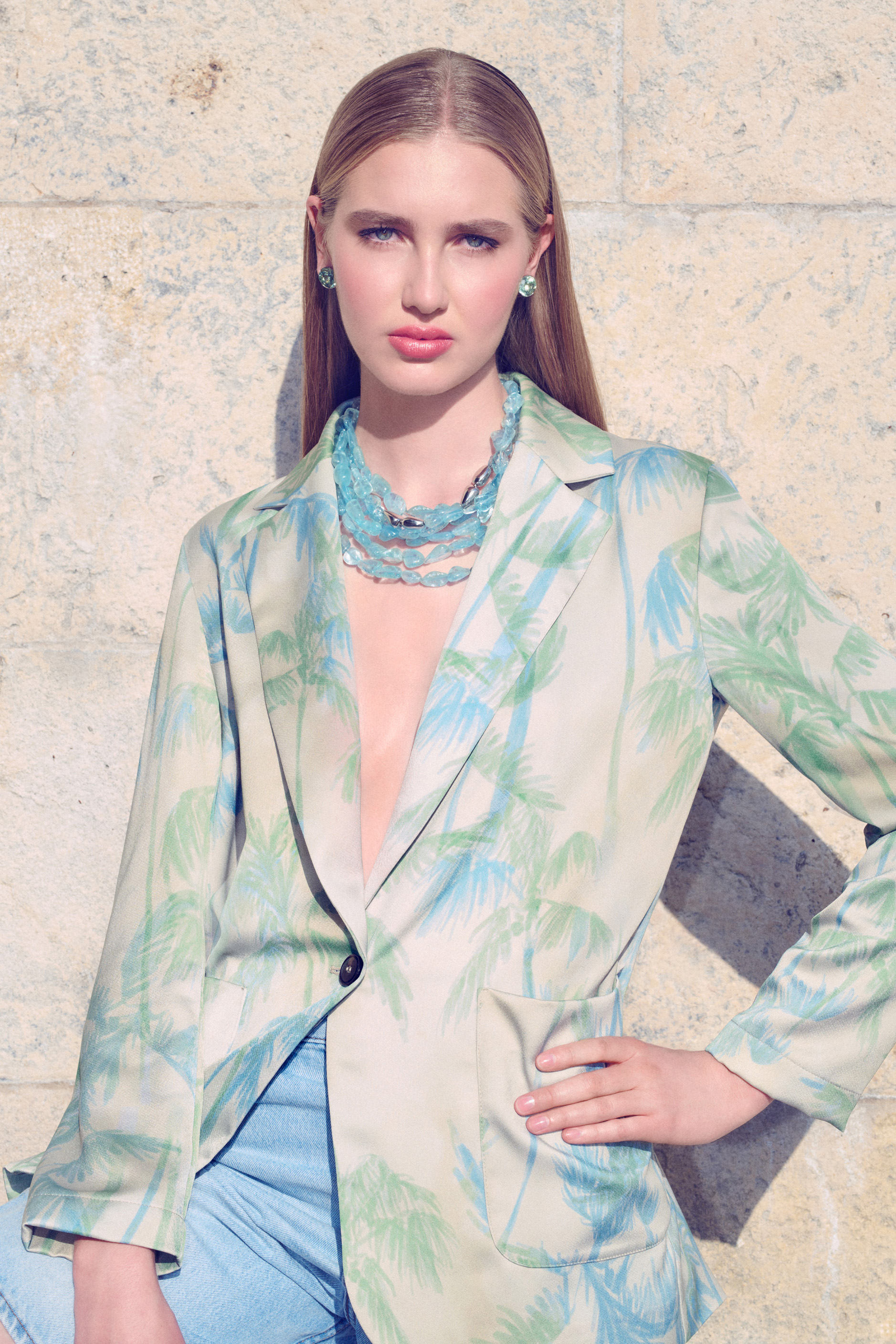 Ein Collier aus Aquamarinen in zarten bis tiefen Blau-Nuancen. Weißgoldschließen, geformt nach den Konturen der Edelsteine, fügen sich wie harmonisch ein. In variabler Länge zu tragen.