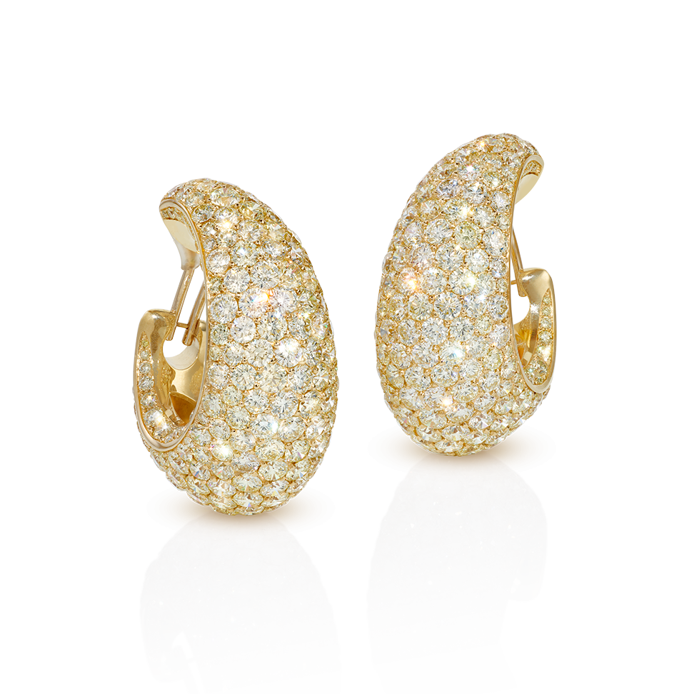 Creolen-Ohrringe mit getönten Brillanten aus der "Symphony"-Kollektion, in 585 Gelbgold gefasst. Ein rechter und ein linker Ohrring gewährleisten einen makellosen Sitz am Ohr.