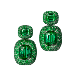 Fein diamantierte Creolen mit Prasiolith-Anhängern, in 750/000 Weißgold gefasst.