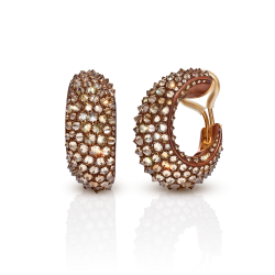 Creolen-Ohrringe, mit naturbraunen Diamanten bespikt (umseitig gefasst), aus der "Symphony"-Kollektion, in 750/000 Roségold gearbeitet. Ein rechter und ein linker Ohrring garantieren den perfekten Sitz am Ohr. Maßanfertigung, gezeigte Länge 4,5 cm.