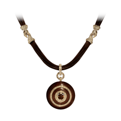 Chain link necklace of 750/000 yellow gold and a hidden claps studded with natural brown diamonds.