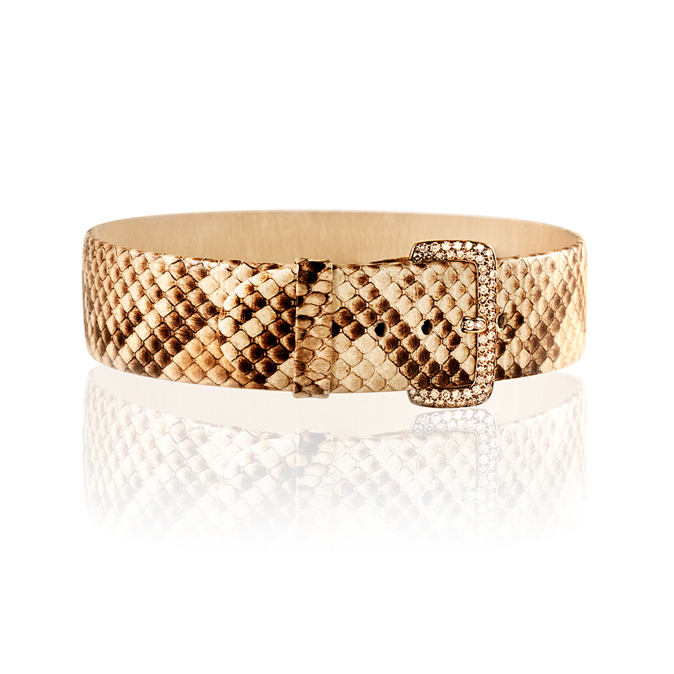 "Collier de chien" necklace of ecru-colored snakeskin with a diamond-studded clasp, set in 750/000 rose gold.