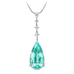 Necklace with a chalcedony cabochon of 10.56 ct. framed by pink sapphires and set in black rhodium-plated 750/000 white gold.