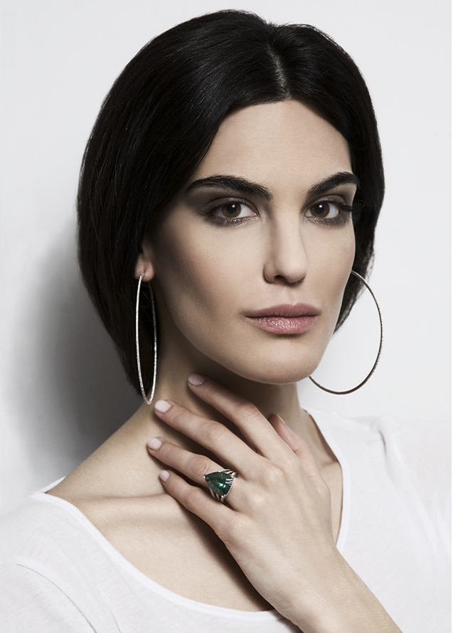 Ring with a pear cut green tourmaline of 16 ct. and diamonds, set in 750/000 white gold.