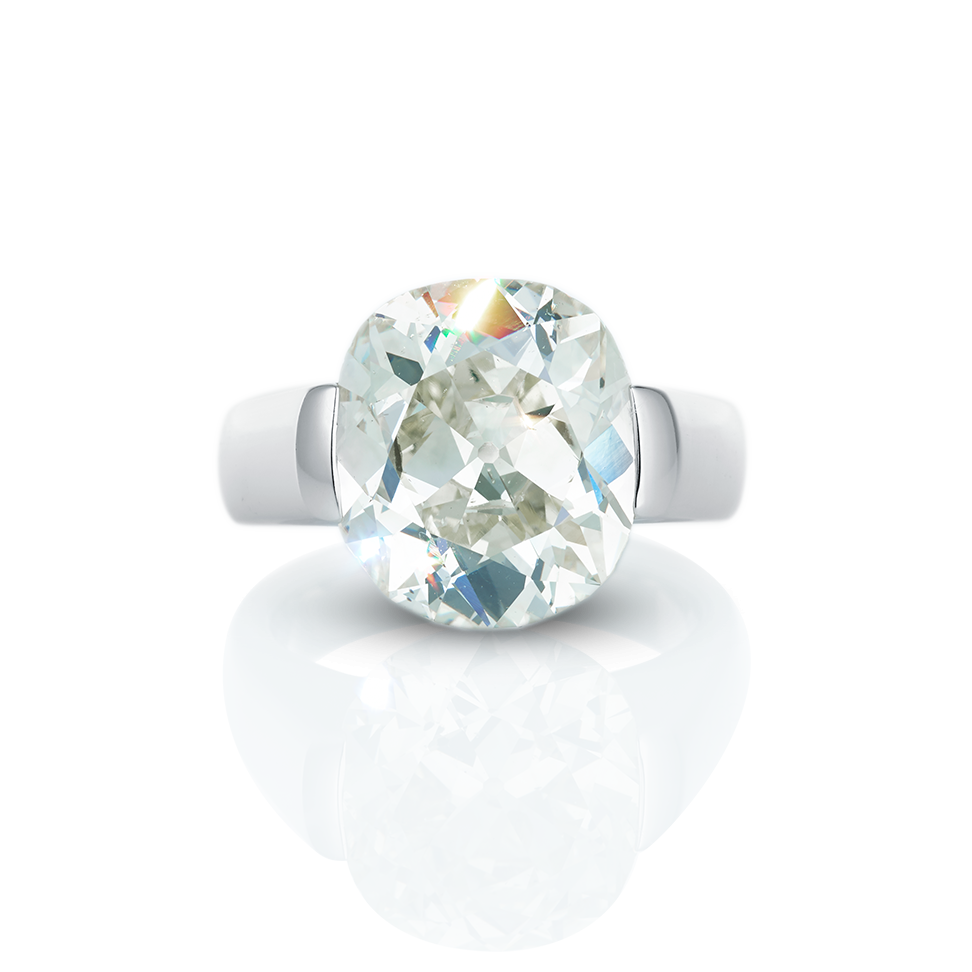 Ring mit Diamanten von 8,61 ct. im European Cut, geschliffen um 1900, wie frei schwebend in Platin Iridium gefasst.