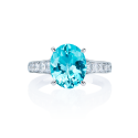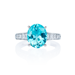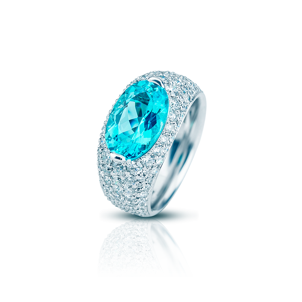 Ring mit oval facettiertem Paraiba-Turmalin von 3,5 ct., in feine weiße Diamanten gebettet und in 750/000 Weißgold gefasst.