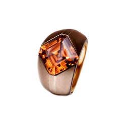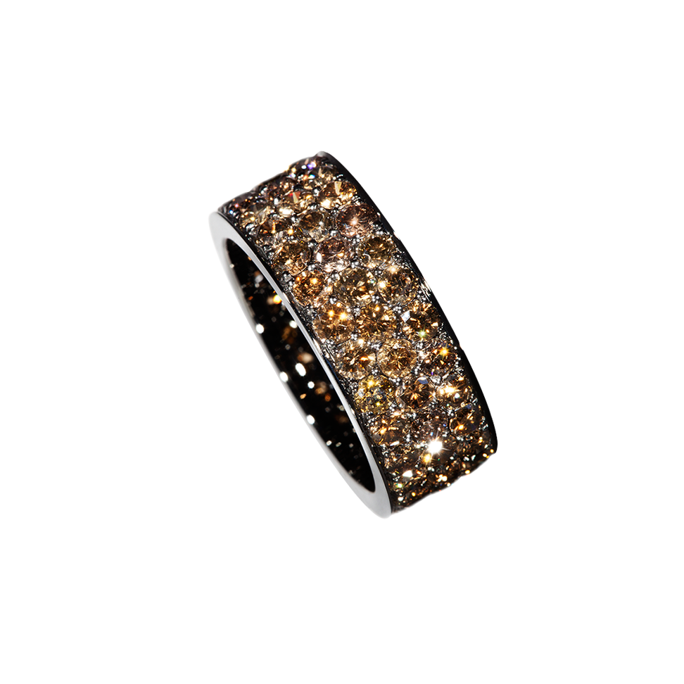 Ring mit drei Reihen aus naturbraunen Diamanten, in schwarz rhodiniertes 750/000 Weißgold gefasst.