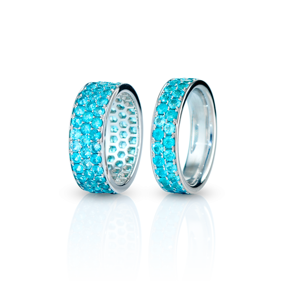 Ringe mit Paraiba-Turmalinen von 5 ct. und 3,5 ct., in 750/000 Weißgold gefasst.