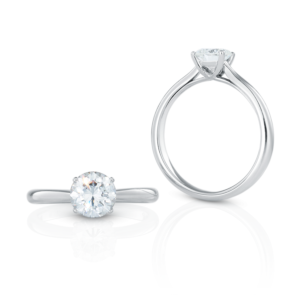 Ring mit facettiertem weißem Diamanten von 1,2 ct. auf vier Krappen, in Platin Iridium gefasst.