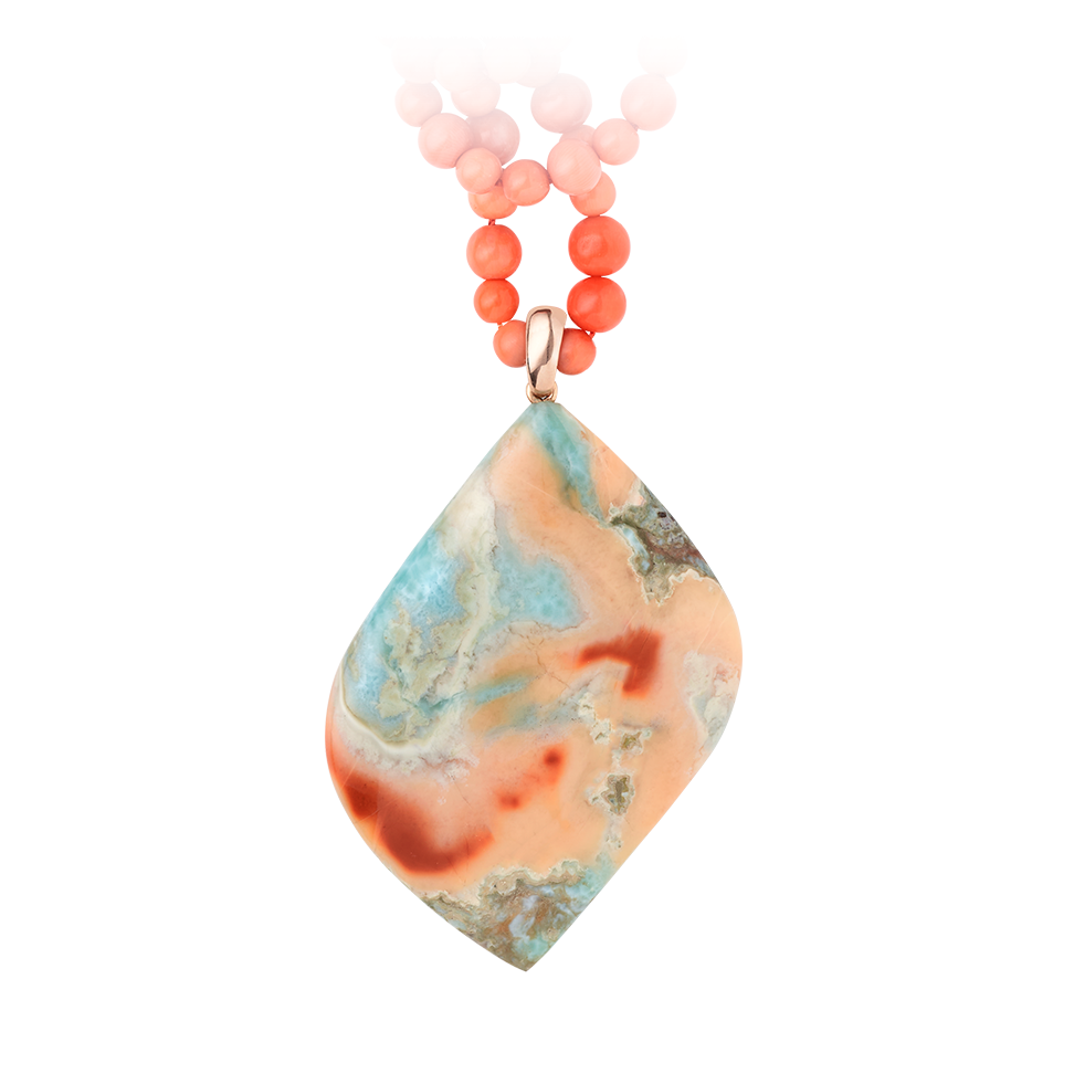 Korallkette mit einem wellenförmig geschliffenen Larimar-Anhänger