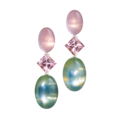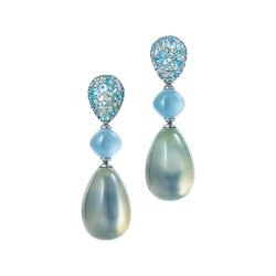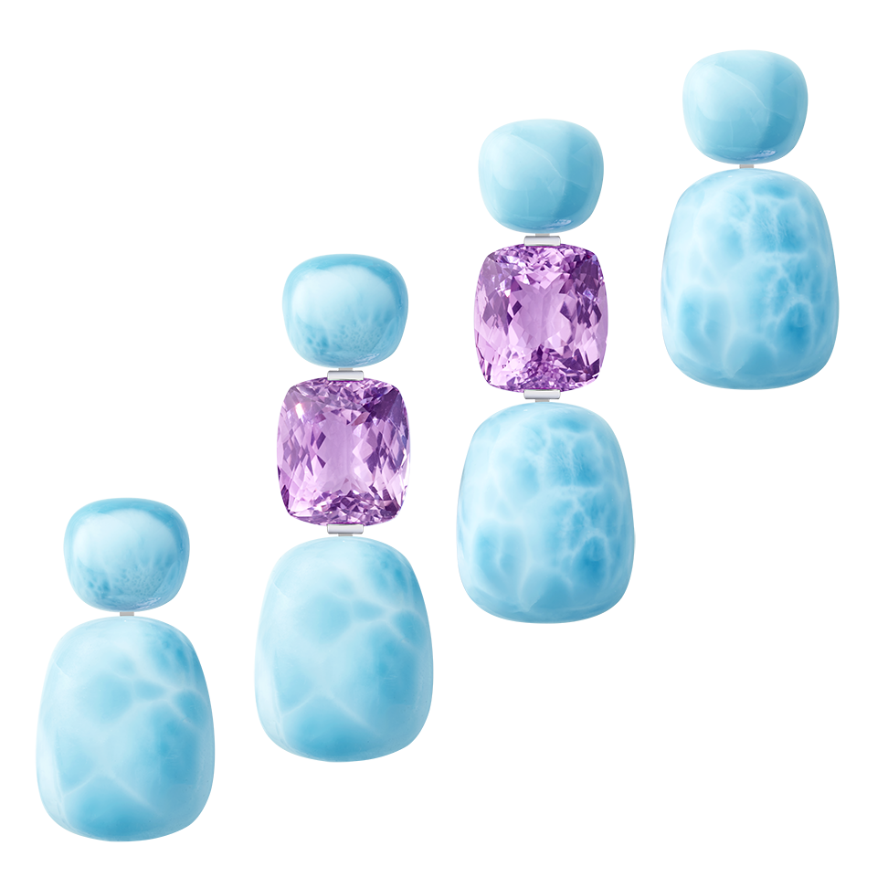 Himmelblauer Larimar erzählt von Unbegrenztheit und Weite. Kunzit in den farblichen Facetten der Kirschblüte wird zum Symbol für Schönheit und Neuanfang. Als Ohrring-Komposition "Around The World" verströmen die Edelsteine pure Lebensfreude und entführen in ferne Länder.
