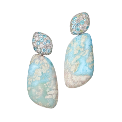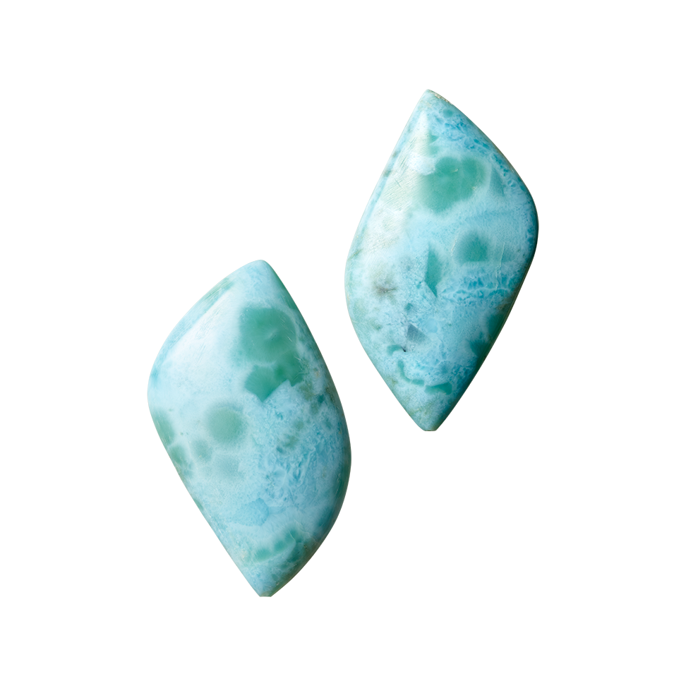 Der karibische Larimar zeichnet sich durch seine Farbschattierungen aus, die von Grün über Blau bis hin zu Brauntönen reichen. Geschliffen zu Schmuck entstehen so einzigartige Kunstwerke wie die Ohrringe „Sails".