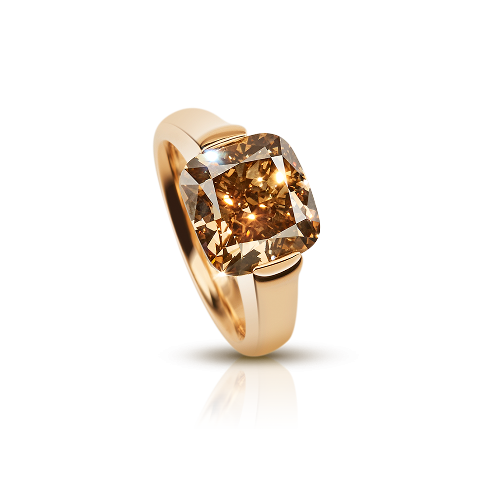 Ring mit naturbraunem Diamanten von 6 ct. im Prinzess-Schliff, in 750/000 Roségold gefasst.