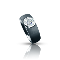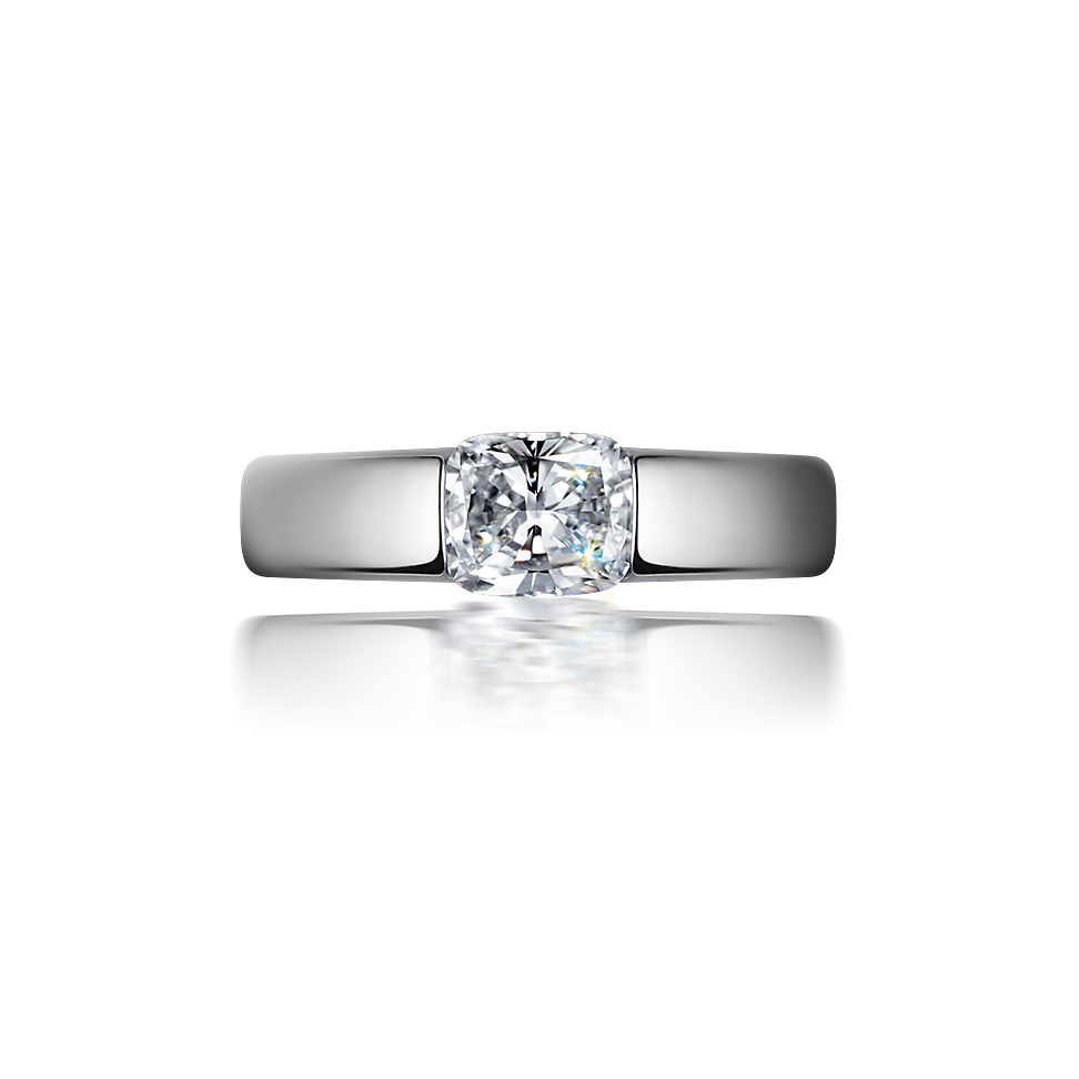 Ring mit facettiertem Diamanten von 1 ct. im Kissenschliff, in Platin gefasst.